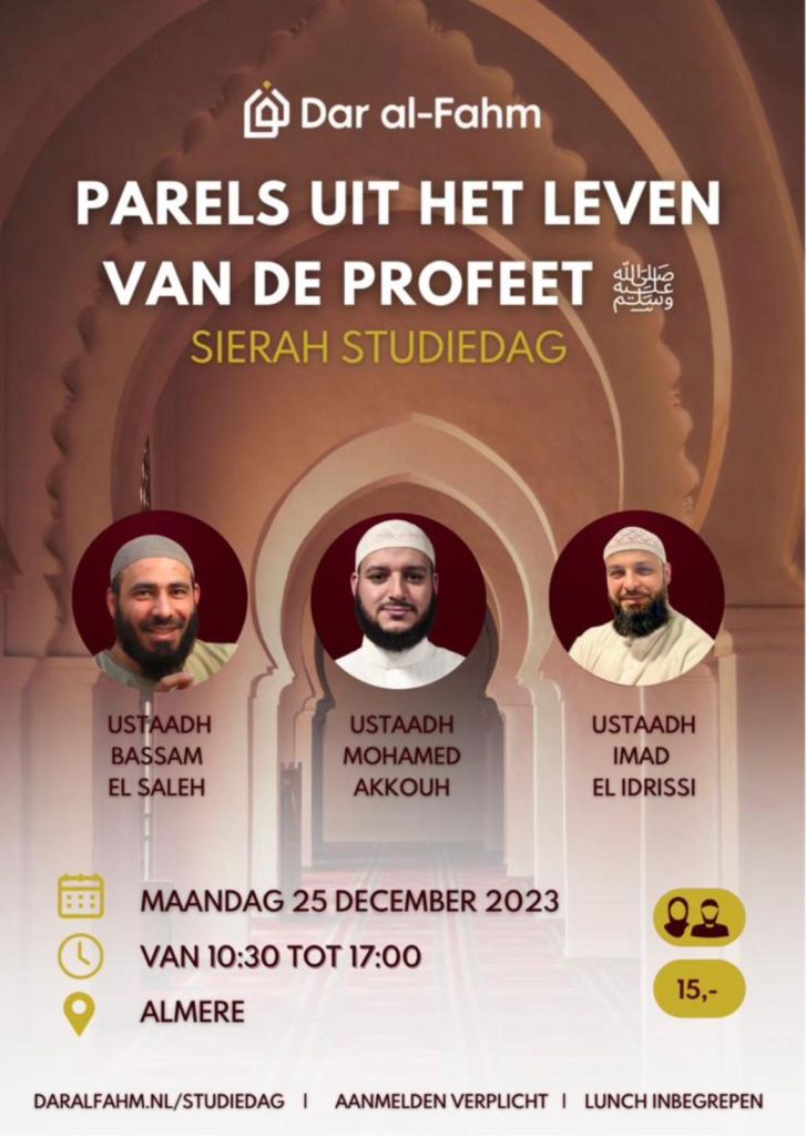 Stap in een boeiende reis door de islamitische geschiedenis en ontdek de parels uit het leven van onze Profeet Mohammed, sallallaahu ‘alaihi wa sallam. Deze onmisbare studiedag zal niet alleen prachtige momenten uit het leven van de Profeet belichten, maar ook diepgaande lessen, wijsheden en vermaningen onthullen die tot op de dag van vandaag een inspiratie vormen voor miljoenen moslims over de hele wereld.